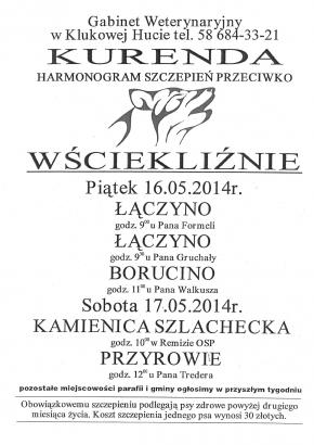 HARMONOGRAM SZCZEPIEŃ PRZECIWKO WŚCIEKLIŹNIE