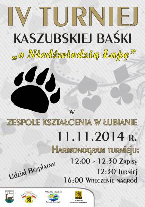 IV Turniej Kaszubskiej Baśki "o Niedźwiedzią Łapę" 27.10.2014 10:07 Treść Facebook Twitter Email Drukuj Drukuj