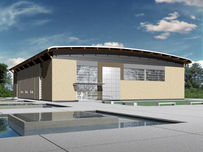 Nowoczesna Hala Sportowo - Widowiskowa usytuowana będzie tuż obok Zespołu Kształcenia i Wychowania w Stężycy i służyć będzie zarówno uczniom jak i mieszkańcom całej gminy.