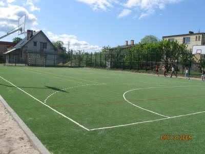 Boiska o wymiarach 22 m x 44 m ogrodzone są siatką stalową wysokości 4 m na słupkach z rur stalowych narożnych wyposażone są w dwie bramki o wymiarach 3x 2 m, dwa kosze do koszykówki, dwa słupki do siatkówki oraz dwa słupki do tenisa ziemnego.