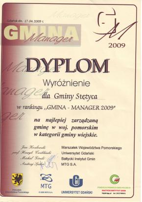 Gmina Stężyca otrzymała wyróżnienie w rankingu „Gmina Menager 2009" za najlepiej zarządzaną gminę w województwie pomorskim w kategorii gminy wiejskie, zorganizowanym przez Marszałka Województwa Pomorskiego, Bałtycki Instytut Gmin, Uniwersytet Gdański oraz Międzynarodowe Targi Gdańskie.
