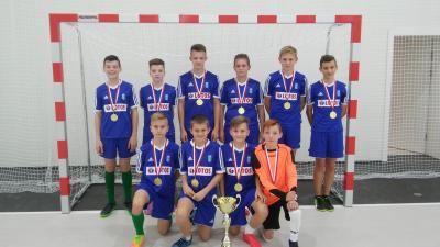 Wygrana Raduni Stężyca rocznika 2003/2004 na inauguracje turniejów halowych w Zblewie.
