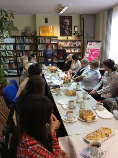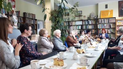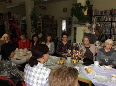 Na dobrą atmosferę spotkania złożyła się żywa dyskusja z p. Agnieszką przy kawie i kaszubskich „kuchach” upieczonych przez Stowarzyszenie Kobiet Zgorzałki.