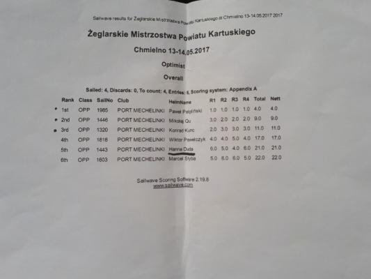 Żeglarskie Mistrzostwa Powiatu Kartuskiego - wyniki