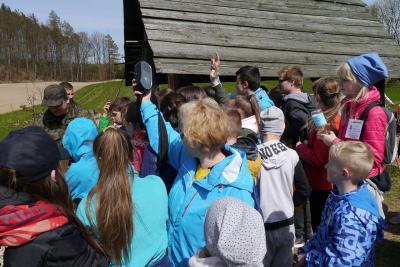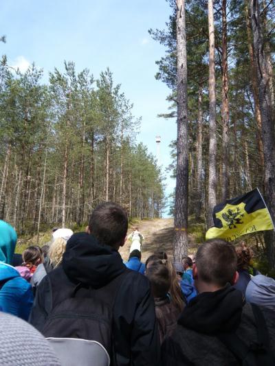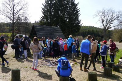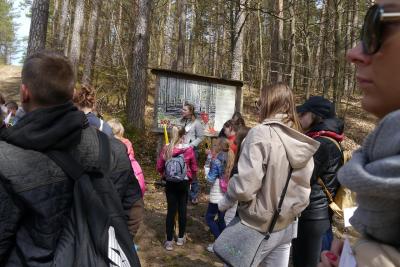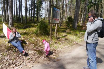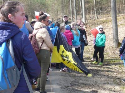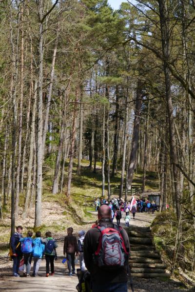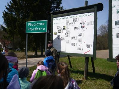 Około 11.30 – uczestnicy wymaszerowali na trasę (około 9 km.), by spotkać się z leśniczym Leśnictwa Płociczno – p. Szymonem Wiśniewskim, który wędrując ścieżką dydaktyczną leśnictwa Płociczno i „Tuszkowska Matka”, opowiadał uczestnikom o ciekawostkach fauny i flory lasów lipuskich.