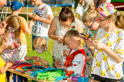 - zjeżdżalnie, dmuchaną kulę, malowanie twarzy.