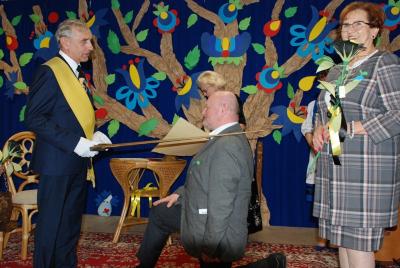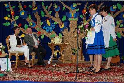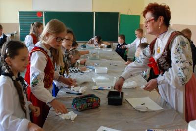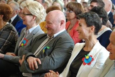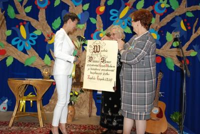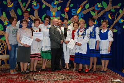24 maja w ZKiW w Kamienicy Szlacheckiej był kaszubskim świętem i okazją do nagrodzenia kolejnych osób zasłużonych dla rozwoju i pielęgnowania języka kaszubskiego. Od rana uczniowie szkoły czynnie uczestniczyli w warsztatach, prowadzonych przez twórców ludowych: lepili garnki, pletli koszyki wiklinowe, malowali na drewnie, szydełkowali, rzeźbili, poznali kunszt papieroplastyki. Najmłodsi poznali kolory haftu kaszubskiego oraz elementy stroju ludowego. Grupa teatralna „Wicherki” wraz z opiekunami uczestniczyła w warsztatach teatralnych, które poprowadził gość specjalny tego dnia – aktorka rodem z Kaszub, Danuta Stenka. O godzinie 10.00 wszyscy uczniowie i zaproszeni goście wzięli udział w koncercie Pawła Ruszkowskiego z Kościerzyny, który zaprezentował utwory głównie w języku kaszubskim. Głównym punktem programu tego uroczystego dnia była gala wręczenia wyróżnień Ryngrafu Witosława p. Danucie Stence i profesorowi Alfredowi Majewiczowi z Poznania. Wyróżnienie to przyznało już po raz szósty Stowarzyszenie Nauczycieli Języka Kaszubskiego „Remùsowi Drëszë”, którego siedziba znajduje się w naszej szkole. Pasowania na Rycerzy Witosława dokonali uprzednio już nagrodzeni p. Brunon Cirocki i p. Janina Kwiecień. Przerwy pomiędzy kolejnymi punktami programu Dnia Kaszubskiego były okazją do zaprezentowania tańców i śpiewu w wykonaniu naszych uczniów z zespołów „Black Stars” i „Iskierki” oraz skorzystania z bogatej oferty różnych stoisk z wyrobami twórców ludowych.