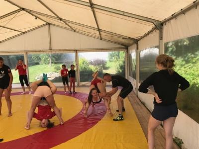 Trenowaliśmy dwa razy dziennie na sali a wolny czas spędzaliśmy aktywnie na plaży, kajakach, napowietrznej siłowni. Korzystaliśmy z boiska plażowego i maty zapaśniczej na której zajęcia ogólnorozwojowe poprowadził Łukasz Konkol.
