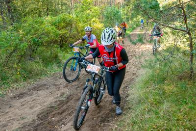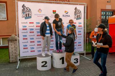 W wyścigu pań na krótszym dystansie podczas zawodów w Stężycy, podobnie jak w Wejherowie triumfowała Weronika Lorkowska (Team Verge Polska, 01:01:12,92). Drugie miejsce na podium przypadło Katarzynie Kuczorskiej (VO2max MTB Team, 01:05:24,07). Na trzecim miejscu wyścig ukończyła Marta Ziemer (GK STG, 01:06:33,29).