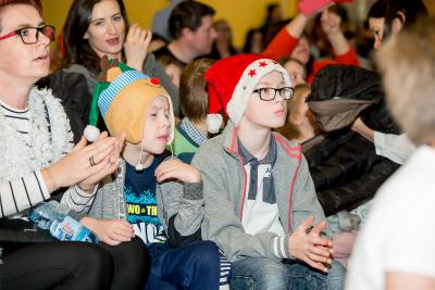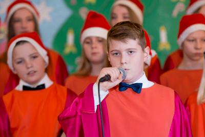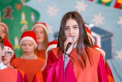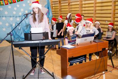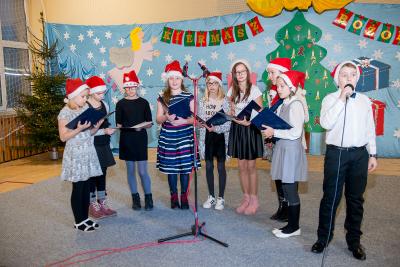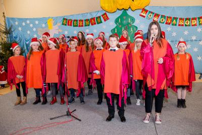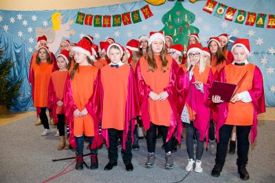 Wśród artystów wieczoru na szczególne słowa uznania zasłużyli uczniowie naszej szkoły. Członków chóru szkolnego „Cudaki” kolejny raz do występu przygotował p. Grzegorz Brylowski. Poznaliśmy talenty podopiecznych p. Małgorzaty Grön oraz Mirosławy Hewelt, które podczas zajęć umuzykalniających przygotowały uczniów: Natalię Brzozowską, Patrycję i Jędrzeja Klinkosz, Barbarę Grzędzicką, Weronikę Bertling, Weronikę Lewandowską, Mariannę Wincek, Karolinę Kupc, Zosię Turzyńską, Martę Mazurkiewicz oraz Judytę Hewelt. Natomiast absolwent naszej szkoły, Grzegorz Treder, zaprezentował tajniki sztuki beatboxu. Zainteresowani mogli również obejrzeć w sali lekcyjnej efekty pracy uczniów klasy 3a gimnazjum w ramach projektu promującego czytelnictwo wśród młodzieży pod hasłem „ A ty, po której jesteś stronie?”.