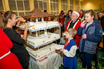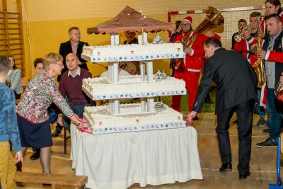 Dnia 10 grudnia br. w Zespole Kształcenia i Wychowania w Szymbarku odbył się XVI Kiermasz Bożonarodzeniowy. Tradycyjnie uczestnicy niedzielnego spotkania przedświątecznego wzięli udział w loterii fantowej przygotowanej przez Radę Rodziców, zaopatrzyli się w oryginalne ozdoby oraz upominki, częstowali się pysznościami w kawiarence oraz obejrzeli niezwykłe występy małych i wielkich gwiazd. Skosztowali także tortu w kształcie wieży widokowej ufundowanego przez cukiernię „Alicja” w Kiełpinie.