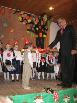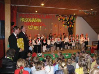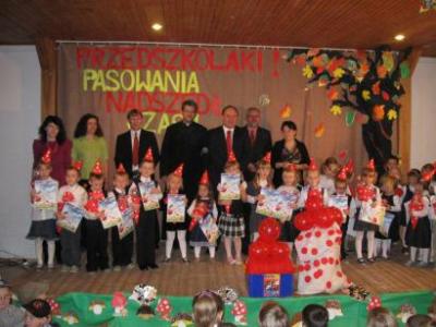 w wykonaniu przedszkolaków. Dzieci otrzymały od swoich gości słodkie podarunki oraz całą gamę zabawek i gier dydaktycznych. Ksiądz proboszcz udzielił im błogosławieństwa na dalszą ścieżkę zdobywania wiedzy. Uwieńczeniem dnia było spotkanie na stołówce szkolnej, gdzie rodzice przedszkolaków zorganizowali prawdziwą ucztę, na którą wraz ze świętującymi dziećmi udali się wszyscy zaproszeni goście.