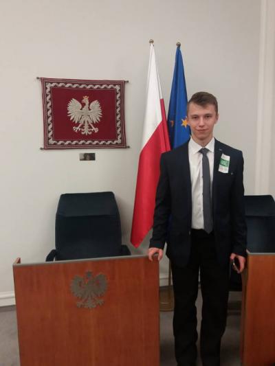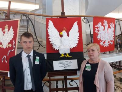 Uczeń Zespołu Kształcenia i Wychowania w Kamienicy Szlacheckiej Piotr Płotka został laureatem Ogólnopolskiego konkursu historyczno-plastycznego "Orzeł Biały - nasza duma". Finał odbył się 7 maja 2018 r., w siedzibie Senatu Rzeczpospolitej w Warszawie. Piotra praca dostała się do ścisłego finału w kategorii szkół ponadpodstawowych, gdzie uczestniczyło 2500 szkół nadsyłając 10 000 prac. Serdecznie gratulujemy.
