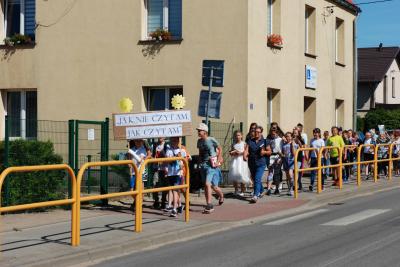 Dnia 08.06.2018 roku o godz. 10.00 rozpoczęła się w ZKiW w Kamienicy Szlacheckiej po raz trzeci akcja wielkiego czytania. Uczniowie i nauczyciele zebrali się by wspólnie czytać – każdy to, na co ma ochotę. Głównym celem przedsięwzięcia była promocja książki, czytania wśród uczniów, inicjowanie mody na czytanie. Wykorzystano masową akcję do pokazania większej aktywności czytelniczej dzieci i młodzieży. I jak w założeniach akcji było, każdy uczestnik przez 10 minut czytał książkę, którą przyniósł ze sobą. Niektórzy przybyli w przebraniu swoich ulubionych bohaterów książkowych. Mamy nadzieję , że poprzez przyłączenie się do ogólnopolskiej akcji „Jak nie czytam, jak czytam”, biblioteka szkolna zainicjuje modę na czytanie wśród uczniów i przekona wszystkich, że czytanie jest trendy.