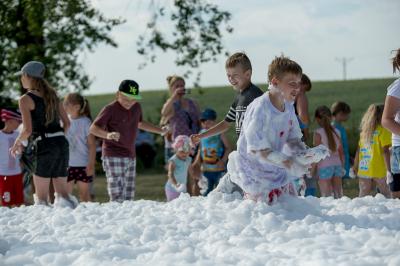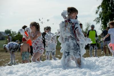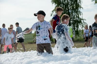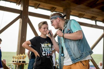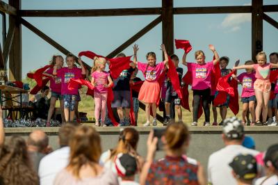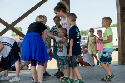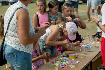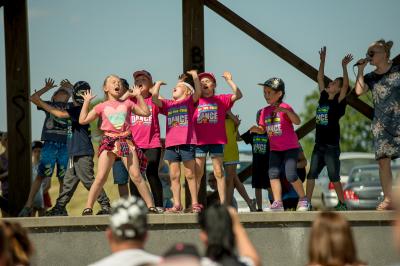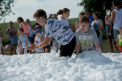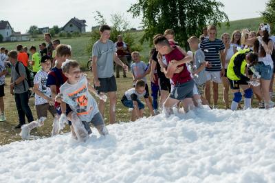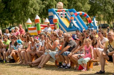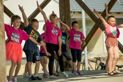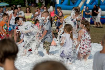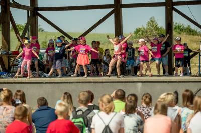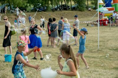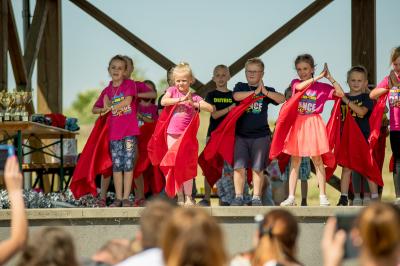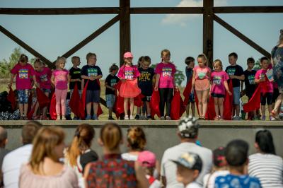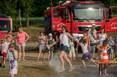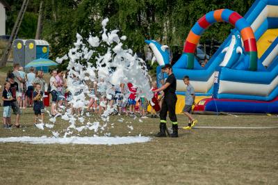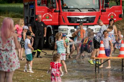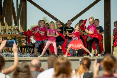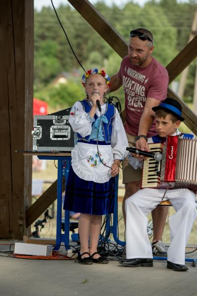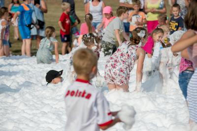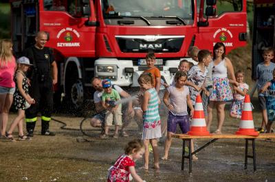 Na początku na scenie swoje umiejętności taneczne zaprezentowała grupa dzieci z klas 0-III pod kierunkiem pani Kingi Dąbrowskiej z Centrum Tańca Szczepan. Świetnym wokalem pochwaliło się rodzeństwo- Patrycja i Jędrzej Klinkosz. Swój występ miał też okazję zaprezentować Zespół Pieśni i Tańca "Marzebiónczi" działający przy ZKiW w Szymbarku pod opieką pani Alicji Zdrojewskiej i pana Grzegorza Brylowskiego. Uczestnicy festynu podziwiali również beatboxowy talent Grzegorza Tredera. Najwięcej radości milusińskim sprawił pokaz przygotowany przez strażaków z OSP Szymbark. Dzieci mogły tarzać się w pianie czy też spróbować swoich sił w strzelaniu strumieniem wody z działka bojowego. Dużą niespodzianką były lody, które strażacy rozdawali po pokazie.