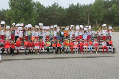 Klasy I-III szkoły podstawowej również obchodziły Dzień Humanistyczny. Panie Adriana Kulaszewicz, Mariola Kupiecka oraz Aneta Stuba-Wrońska, które zorganizowały ten dzień, poprosiły uczniów, aby byli ubrani w barwy narodowe. Dzieci i wychowawczynie stanęły na wysokości zadania. Pierwszą godzinę wszyscy spędzili w amfiteatrze, gdzie próbowali stworzyć najdłuższą flagę polski. Dzieci chętnie współpracowały przy tym niecodziennym zadaniu. Przez kolejną godzinę dzieci bawiły się na sali gimnastycznej w różne zabawy, m.in. kalambury, rozwiązywanie krzyżówki, wykreślanki wyrazowe czy odgadywanie ukrytego wyrazu. Uczniowie mieli głowy pełne pomysłów i świetnie radzili sobie z każdym zadaniem. To był pracowity dzień. Wszystkim dopisywał bardzo dobry humor. Wszystkie klasy zaprezentowały wysoki poziom umiejętności językowych.