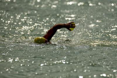 Jeszcze trudniejsze zadanie mieli do wykonania swimrunerzy startujący na dystansie 10 km. Pogoda nie rozpieszczała zawodników, którzy zmagali się z silnym wiatrem. Najlepszy mężczyzna na tym dystansie – Mikołaj Kołakowski (Endure Team) wbiegł na metę z czasem 01:31:28. Drugi miejsce na podium zajął Adam Błonowski (01:32:10), a trzecie Marcin Milczunas (01:32:39, Nadaktywni).
