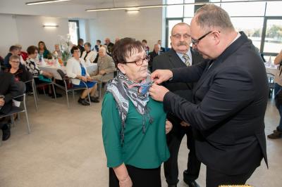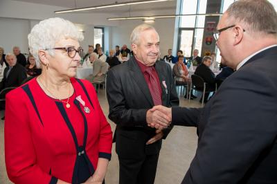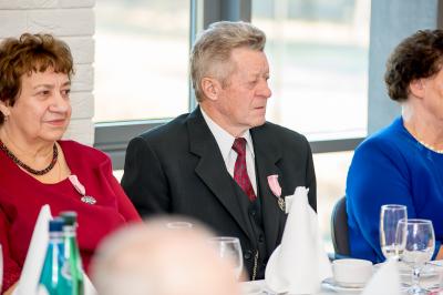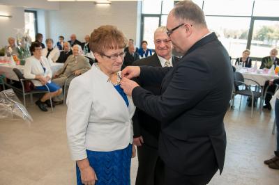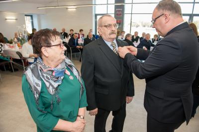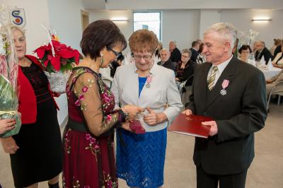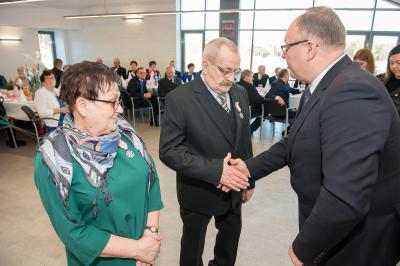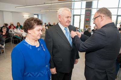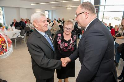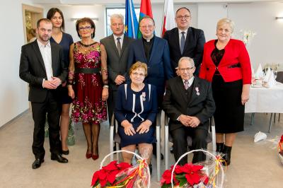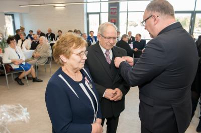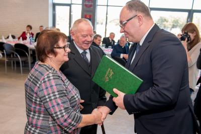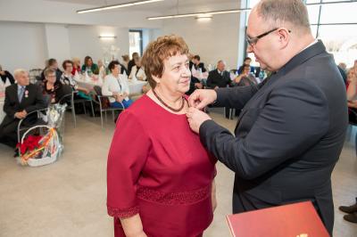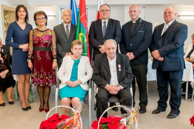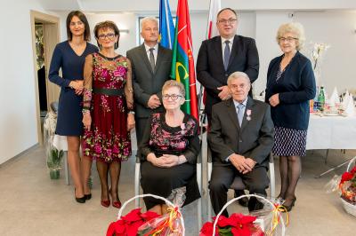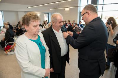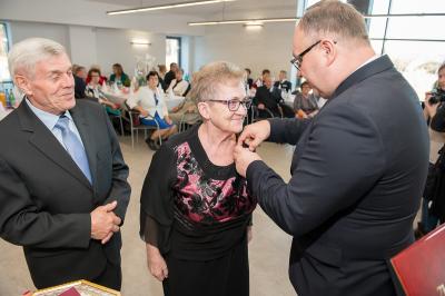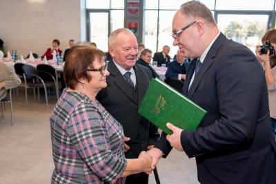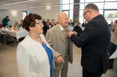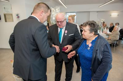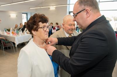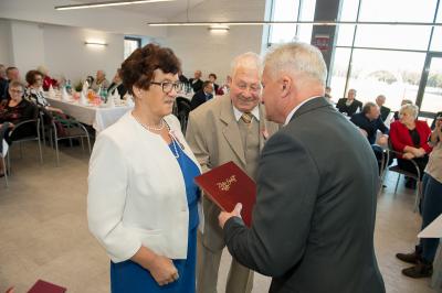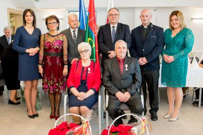 Z tej okazji w Urzędzie Gminy Stężyca odbyło się uroczyste spotkanie z dostojnymi Jubilatami. Uroczystego aktu dekoracji medalami nadanymi przez Prezydenta Rzeczypospolitej Polskiej dla osób, które przeżyły 50 lat w jednym związku małżeńskim, w dowód społecznego uznania dla trwałości małżeństwa i rodziny dokonał Wójt Gminy Stężyca Tomasz Brzoskowski.