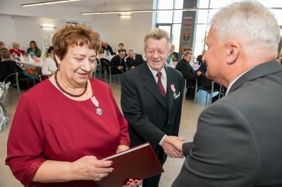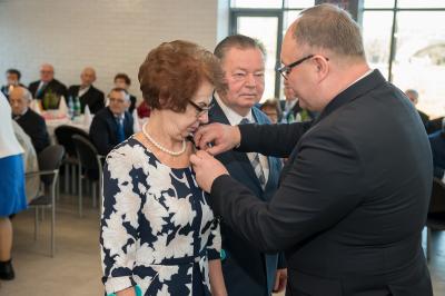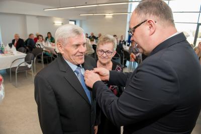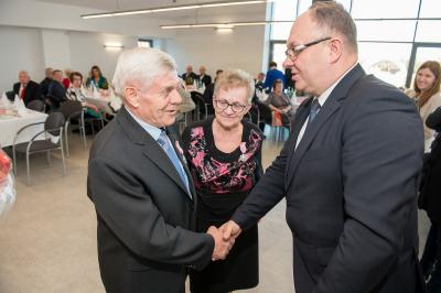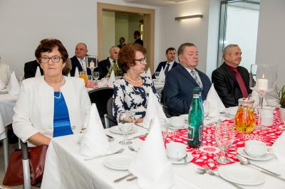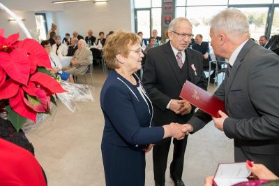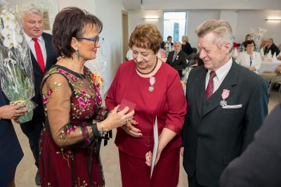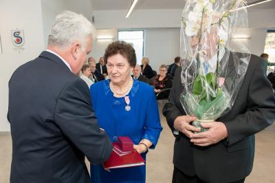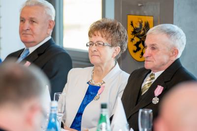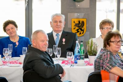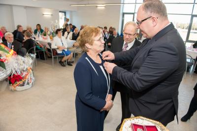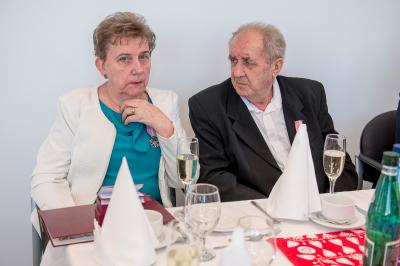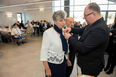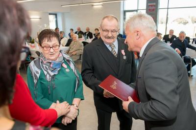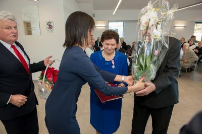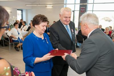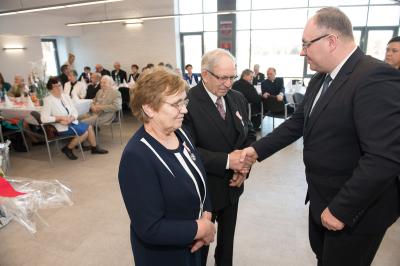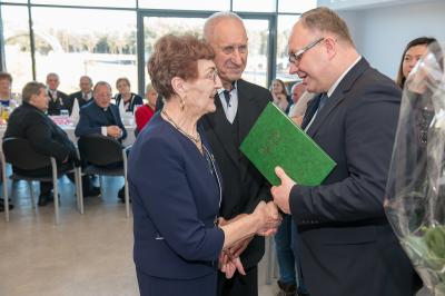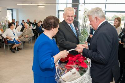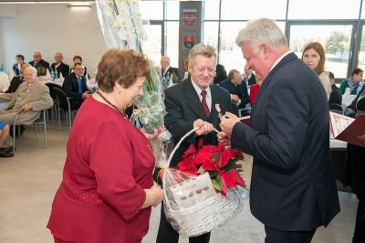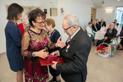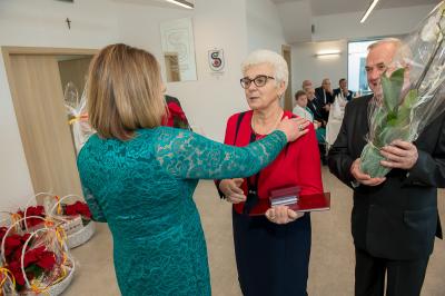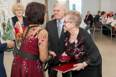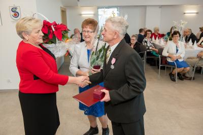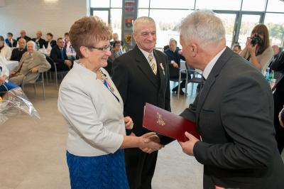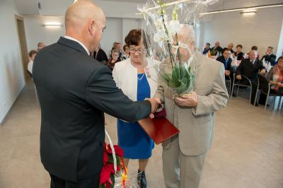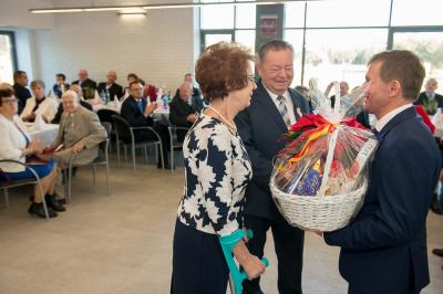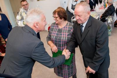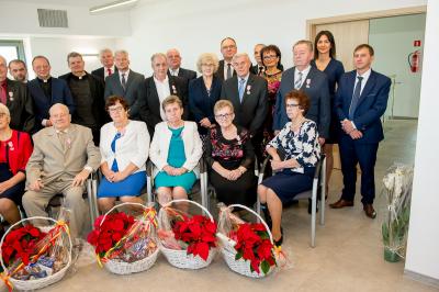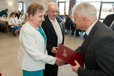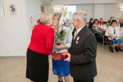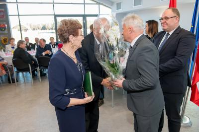 Jubilatom wręczono odznaczenia, pamiątkowe dyplomy, upominki oraz kwiaty.