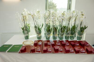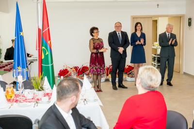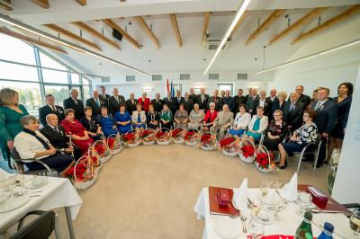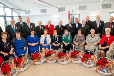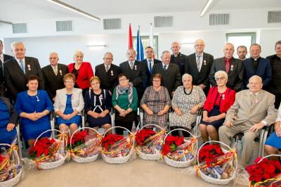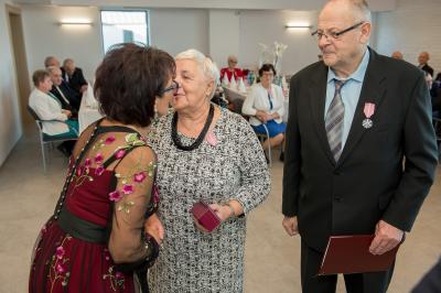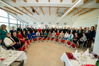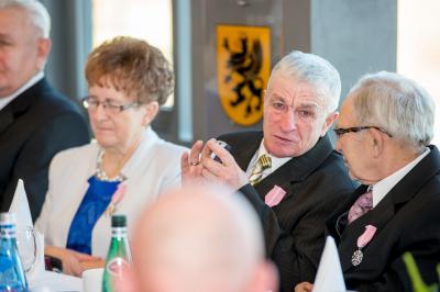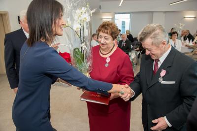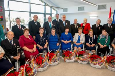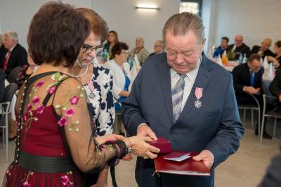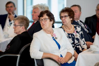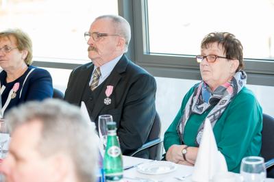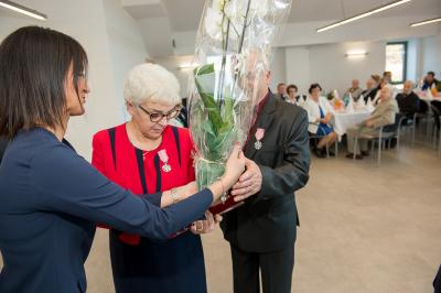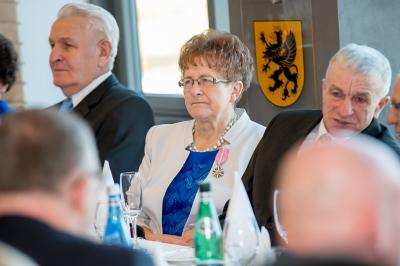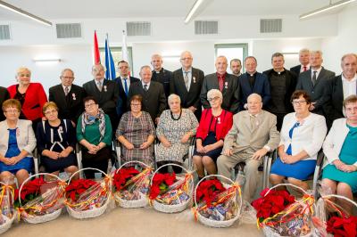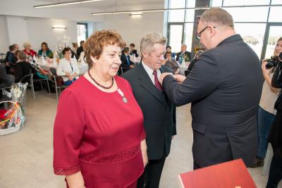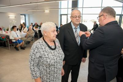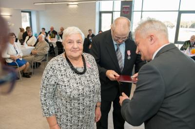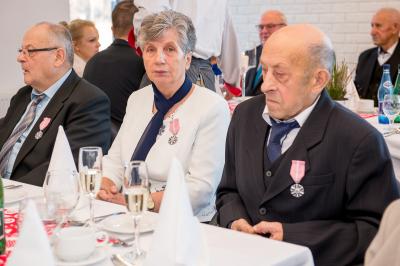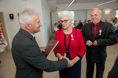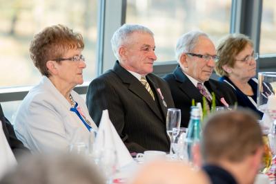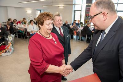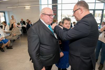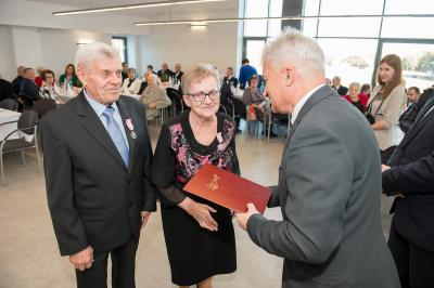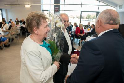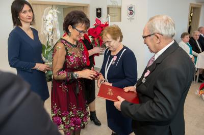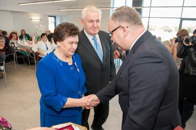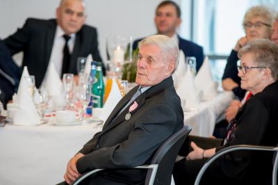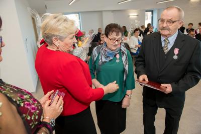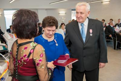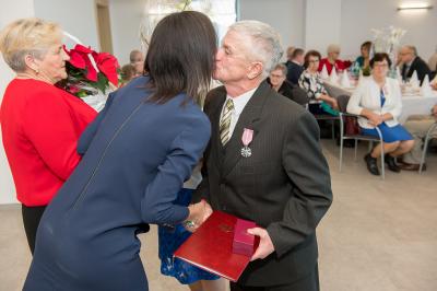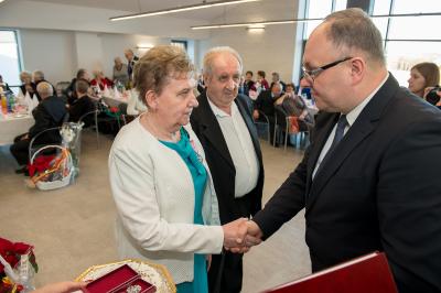 Jubilatom wręczono odznaczenia, pamiątkowe dyplomy, upominki oraz kwiaty.