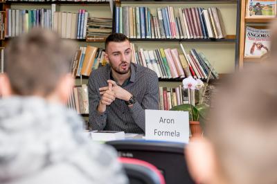 We wtorkowe przedpołudnie o godz 10ºº w Bibliotece odbyło się spotkanie z mieszkańcem Stężycy Aronem Formelą na którym autor promował swoją książkę pt.: Mentalny gigant. Stań się świadomym wojownikiem”.