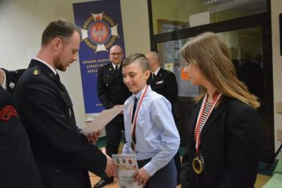 Paweł Zaborowski, uczeń klasy Vb Szkoły Podstawowej w Szymbarku, zwyciężył w eliminacjach wojewódzkich Ogólnopolskiego Turnieju Wiedzy Pożarniczej "Młodzież zapobiega pożarom” w grupie wiekowej 10-13 lat. Gratulujemy ogromnego sukcesu! Celem konkursu jest popularyzacja wśród dzieci i młodzieży znajomości przepisów przeciwpożarowych, zasad postępowania na wypadek pożaru oraz praktycznych umiejętności posługiwania się podręcznym sprzętem gaśniczym i techniką pożarniczą, a także poznawanie tradycji i organizacji ochrony przeciwpożarowej. Pod koniec maja Paweł będzie reprezentował województwo pomorskie w ogólnopolskim finale. Trzymajmy kciuki za młodego druha!