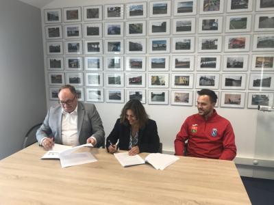 Współpraca została potwierdzona w formie umowy podpisanej w Stężycy przez przedstawicieli obu stron. Wójt Stężycy Tomasz Brzoskowski podkreślił, że firma została wybrana ze względu na gwarantowane przez nią wysoką jakość, ciekawe wzornictwo, szeroki asortyment i konkurencyjne ceny. Carolina Sanchez, dyrektor Jomy na Europę Centralną wyraziła zadowolenie, że producent, dzięki swoim produktom i świadczeniom sponsorskim, dołoży cegiełkę do prężnego rozwoju sportu w Stężycy i okolicach.