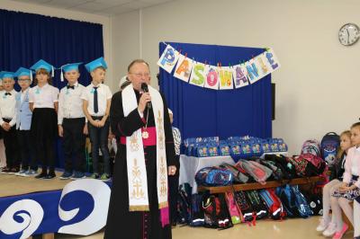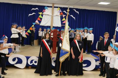 16 października 2019 odbyła się w Zespole Kształcenia i Wychowania w Kamienicy Szlacheckiej ważna uroczystość- ślubowanie i pasowanie na ucznia pierwszoklasistów. Pierwszaki ze śpiewem na ustach, w marynarskim klimacie, wykazali się dużą wiedzą i umiejętnościami , sprawnie pokonali tor przeszkód oraz wykonali wszystkie zadania. W obecności zaproszonych gości: zastępcy wójta pani Katarzyny Rynkiewicz, księdza proboszcza Bogdana Drozdowskiego, dzielnicowego Krystiana Wica, policjanta Rafała Ebertowskiego oraz uczniów klas II i III, nauczycieli, Dyrekcji Szkoły i Rodziców uczniowie złożyli na Sztandar Szkoły uroczyste ślubowanie. Obiecali, że będą pilnie się uczyć , będą szanować innych oraz kochać swoją ojczyznę. Pani dyrektor Dorota Literska pasowała 28 dzieci na uczniów ,życząc, aby ten szkolny statek stał się dla nich drugim domem. „Gratuluję Wam, Kochani Pierwszoklasiści i bardzo się cieszę, że zasililiście załogę naszego szkolnego statku, którym razem popłyniemy w niezapomniany rejs, odkrywając nowe horyzonty, przeżywając fantastyczne przygody…” Następnie ks. Bogdan Drozdowski poświęcił tornistry i przybory szkolne pierwszoklasistów. Uczniowie przyjęli również wiele życzeń od wszystkich gości oraz otrzymali mnóstwo prezentów. To miłe i ważne wydarzenie zakończyło się słodkim poczęstunkiem przy wspólnym stole.