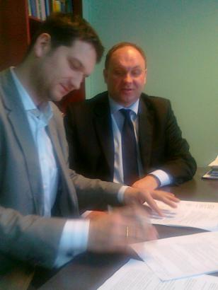 Wójt Gminy Stężyca Tomasz Brzoskowski podpisał umowy na wykonanie projektów architektoniczno-budowlanego dla realizacji zadań polegających na: „Budowie świetlicy wiejskiej z funkcjami edukacyjnymi w miejscowości Klukowa Huta", „Rozbudowie Zespołu Kształcenia i Wychowania w Stężycy o funkcje przedszkolne i gimnazjum", w miejscu istniejącego budynku przeznaczonego do rozbiórki oraz na: „Termomodernizacji placówek oświatowych na terenie gminy: ZKiW Klukowa Huta i ZKiW Szymbark".