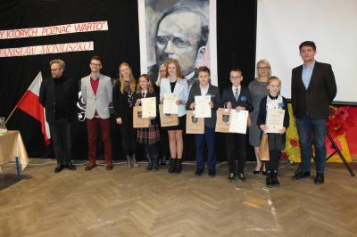 Uczniowie biorący udział w konkursie wykazali się wiedzą o życiu Stanisława Moniuszki, a także znajomością jego utworów.