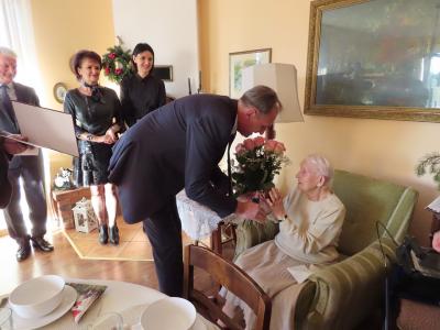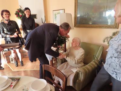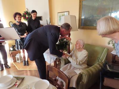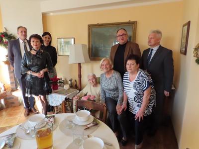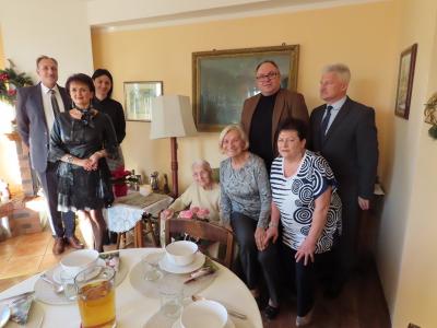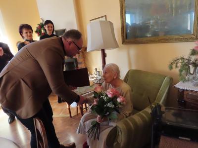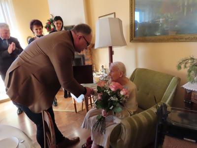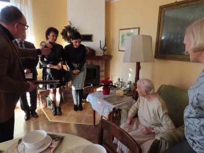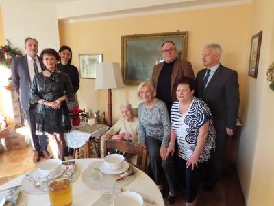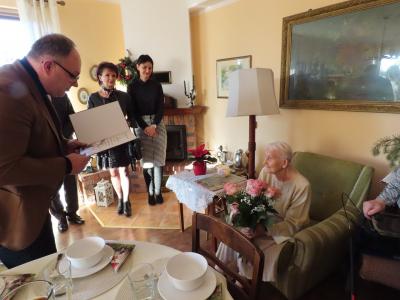 Z okazji tych wyjątkowych urodzin Jubilatkę odwiedzili wójt gminy Stężyca Tomasz Brzoskowski, przewodniczący Rady Gminy Stężyca Stefan Literski, radny Rady Gminy Stężyca Jarosław Turzyński, p.o. naczelnika wydziału spraw obywatelskich Sabina Kobiela, zastępca kierownika Urzędu Stanu Cywilnego Agnieszka Szmaglińska, naczelnik wydziału kultury i sportu Marcin Kieliński.