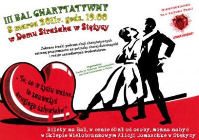 8 marca 2011 roku o godz. 19 w Domu Strażaka w Stężycy odbędzie się III Bal Charytatywny. Bilety na bal w cenie 60 zł od osoby można nabyć w Sklepie Wielobranżowym Alicji Domaschke w Stężycy.