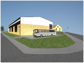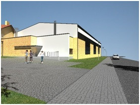 W obiekcie zaprojektowano kompleks pomieszczeń magazynowo – technicznych, w tym magazyn sprzętu sportowego, magazyn oleju opałowego oraz pomieszczenie techniczne z kotłem na olej opałowy oraz niewielki magazyn na sprzęt ogrodniczy. Nad pomieszczeniami magazynowymi znajdą się pomieszczenia dla potrzeb lokalnego Koła Gospodyń Wiejskich, w tym pomieszczenie wielofunkcyjne z aneksem kuchennym oraz toaletę. Projektowana rozbudowa to w większości obiekt o jednej kondygnacji nadziemnej. Jedynie nad częścią magazynową projektuje się drugą kondygnację nadziemną.