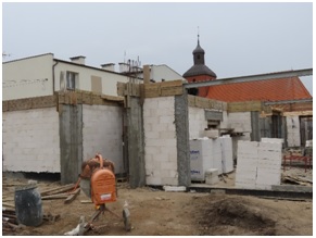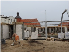 Postępują prace budowlane przy budowie gminnej biblioteki w Stężycy. Na tą chwilę została ukończona piwnica budynku oraz jeden z trzech segmentów, którego zwieńczeniem jest konstrukcja więźby dachowej. Docelowo w budynku biblioteki znajdzie się wydzielona strefa dla dzieci, strefa dla dorosłych oraz strefa dla młodzieży na antresoli poddasza. W jednym z segmentów strefy multimedialnej ‘’Książki Polskiej’’ mieścić się będzie sala widowiskowa.