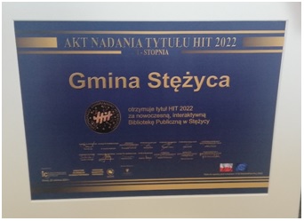 W czwartek, 23 czerwca 2022 roku na Zamku w Gniewie odbyła się uroczysta gala, podczas której ogłoszono wyniki HITU Roku 2022 regionów: pomorskiego i kujawsko-pomorskiego. Gmina Stężyca została uhonorowany nagrodą za nowoczesną, interaktywną Bibliotekę w Stężycy.