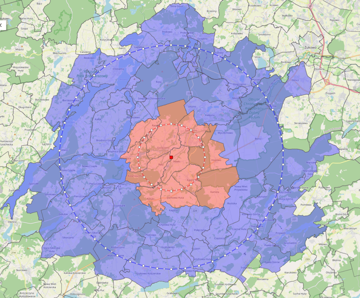 Jednocześnie informuje się, że w strefie zagrożonej znajdują się również tereny należące do gminy Stężyca.