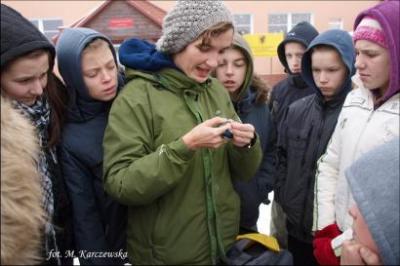 Dzieci z sześciu klas Szkoły Podstawowej w Szymbarku przez dwa dni: 4 i 14 grudnia uczestniczyły w warsztatach ornitologicznych. Pani Marta Ściborska z Grupy Badawczej Ptaków Wodnych „Kuling" w pierwszej części zajęć opowiadała uczniom o zwyczajach ptaków oraz ich wędrówkach - bogato ilustrując opowieści fotografiami. Dzieci dowiedziały się, na czym polega obrączkowanie ptaków, zobaczyły obrączki dla dużych łabędzi i malutkich mysikrólików. W drugiej części zajęć (już w terenie) sprawdzały delikatne sieci rozpięte przy karmniku - w planach było obrączkowanie ptaków. Złapały się w nie sikorki bogatki, jedna z nich była już zaobrączkowana, innym - przy pomocy uczniów - pani Marta założyła obrączki. Ptaki zważono i pomierzono - wszystko notując na specjalnych arkuszach. Dzieci czekają na kolejne, wiosenne już spotkania z panią ornitolog. Opowiedziały o gniazdach czapli i czajkach obserwowanych niedaleko szkoły .
