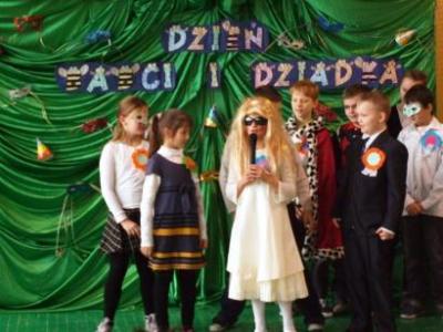 „Dziś Święto Babci i Święto Dziadziusia, o tym dniu pamięta każda mały wnuk i każda wnusia..." - tymi słowami uczniowie klas młodszych rozpoczęli swoje występy. Na początku zaprezentowały się najstarsze dzieci, trzecioklasiści. Przedstawiły inscenizacje o tematyce karnawałowej. Potem uczniowie młodszych klas recytowali wiersze i śpiewali piosenki dla ukochanych dziadków z dumą patrzących na swoje wnuczęta, które włożyły wiele wysiłku w to, aby jak najlepiej wyrazić miłość i szacunek. Na wszystkich twarzach widniały: radość, uśmiech, a nawet łzy wzruszenia. Na końcu dzieci wręczyły własnoręcznie przygotowane upominki i rozpoczęto wspólne świętowanie.Ten dzień na długo pozostanie w pamięci babć, dziadków, a także wszystkich wnucząt.