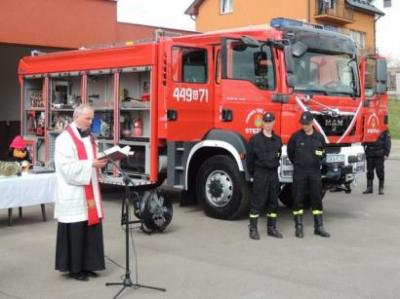Uroczystości zbiegły się także dniem Świętego Floriana patrona strażaków. Wójt Gminy Stężyca przekazał nowoczesny wozu marki MAN TGM 18.340 BB z napędem 4x4, który zakupiła Gmina Stężyca. Łączna wartość samochodu wyniosła 688 tys. zł. Środki na ten cel pochodziły w kwocie 508 tys. zł z budżetu Gminy Stężyca oraz 180 tys. zł z budżetu Państwowej Straży Pożarnej w Kartuzach.