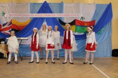 w Lipuszu, Dziemianach, Gołubiu, Szymbarku i Stężycy, w dwóch kategoriach wiekowych. Zebranych powitała Dyrektor Zespołu Kształcenia i Wychowania w Stężycy, Pani Lucyna Kerlin, a konkurs otworzył Wójt Gminy Stężyca Pan Tomasz Brzoskowski, jednocześnie sponsor nagród i poczęstunku. Młodzież śpiewała w trzech językach: po angielsku, kaszubsku i niemiecku. Ich umiejętności językowe