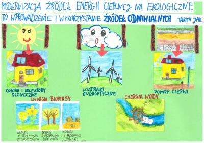 W ramach ogłoszonego międzyszkolnego konkursu plastycznego pt. „Modernizacja źródeł energii cieplnej” wpłynęło 29 prac wykonanych przez uczniów Zespołu Kształcenia i Wychowania w Stężycy, Zespołu Kształcenia i Wychowania w Klukowej Hucie, Zespołu Kształcenia i Wychowania w Kamienicy Szlacheckiej i Zespół Kształcenia i Wychowania w Szymbarku. Z prac, które wpłynęły komisja konkursowa wybrała 4 najpiękniejsze.
