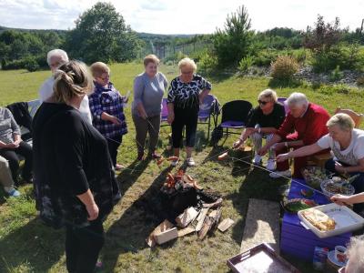 Teraz przygotowują się do jesiennej potańcówki oraz pobierają lekcje tańca tradycyjnego ( reinlandra, poleczkę, walczyka, oberka). W międzyczasie słuchali opowieści o historii, o " Szeptuchach", nawiedzonych miejscach i lokalnych wierzeniach. Działali też artystycznie - malowali i na warsztatach garncarskich wyrabiali naczynia, grali na świeżym powietrzu z Panem Marianem Wnuk-Lipińskim. Klubowicze przypomnieli sobie także gry swojego dzieciństwa - "w kapsle', "w wojnę" i rzucanie scyzorykiem. Na ognisko i spotkanie plenerowe zaprosiła seniorów z NESTORA pani Basia – dobry duch psychologiczny. Pan Kazimierz Żołnowski uczył panie oraz panów przyrządzać krewetki, zupę rybną i ryby w galarecie ( a także smakować przy okazji). Zajęcia z panią Eweliną Karcz przeniosły NESTORÓW w czasie podczas wspominek o młodości i oglądania własnych zdjęć sprzed 20- 50 lat.